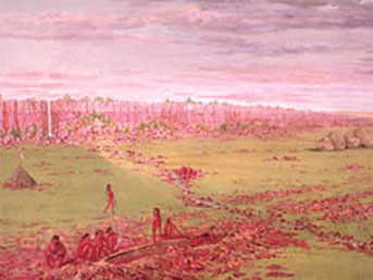George Catlin's painting of American Indians at the Pipestone quarry titled
