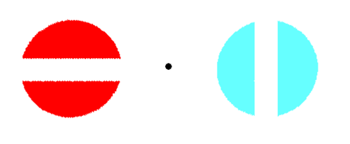 We place the following picture about 1.5m in front of us. We look exactly at the black spot for 30 seconds or so, and we observe colored dots with our peripheral vision. We must resist the temptation to look anywhere else, but the black spot.