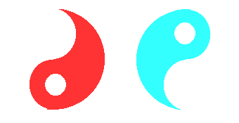 In this exercise, we compose a yin-yan sign from two separate halves. We move back until we are about one meter from the monitor. We put our finger half way between our eyes, and the image below. We focus on the tip of our finger, but we look at the two halves of the yin-yan sign below. Our aim is to achieve a perfect yin-yan sign, with no gaps and no overlaps.