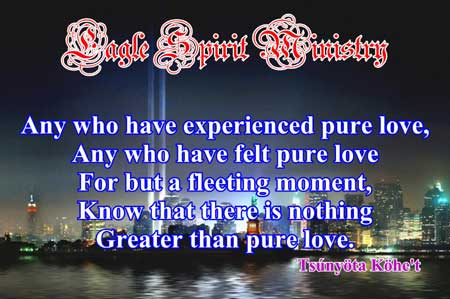 | The topic before us is unconditional love. Not the fleeting love that so many choose to believe is the one and only love; the love of one physical being for another, a brief moment in time, in the life time of the Soul. From this level, there is constant communion within the energy of Unconditional Love. We do, however, need to make time for this special communion with the Love of all that is. There is still this concept that without the love of another, a physical being that we can see and touch and hold, we are somehow not complete. We are so tuned to looking for love outside of our own selves, that we lose sight of the unconditional love around us, coursing through us, available at all times, if we would but take the time to connect. |