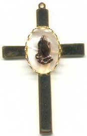 Gold Plated Cross with Praying Hands on MOP.