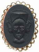 A black glass Queen Nefertiti cameo brooch