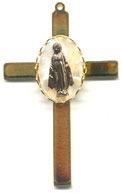 Medium Gold Plated Cross with Basket mounted Gold Plated Virgin Mary on MOP.