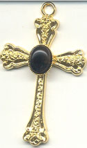 Medium Gold Plated Cross with Gemstone Cab. Black Onyx is shown but Gemstone may vary.