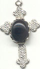 Small Pewter Cross with Gemstone Cab. Black Onyx is shown but Gemstone may vary.
